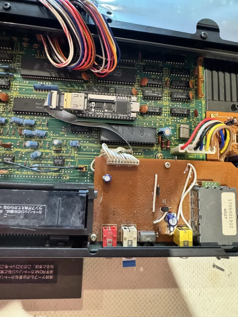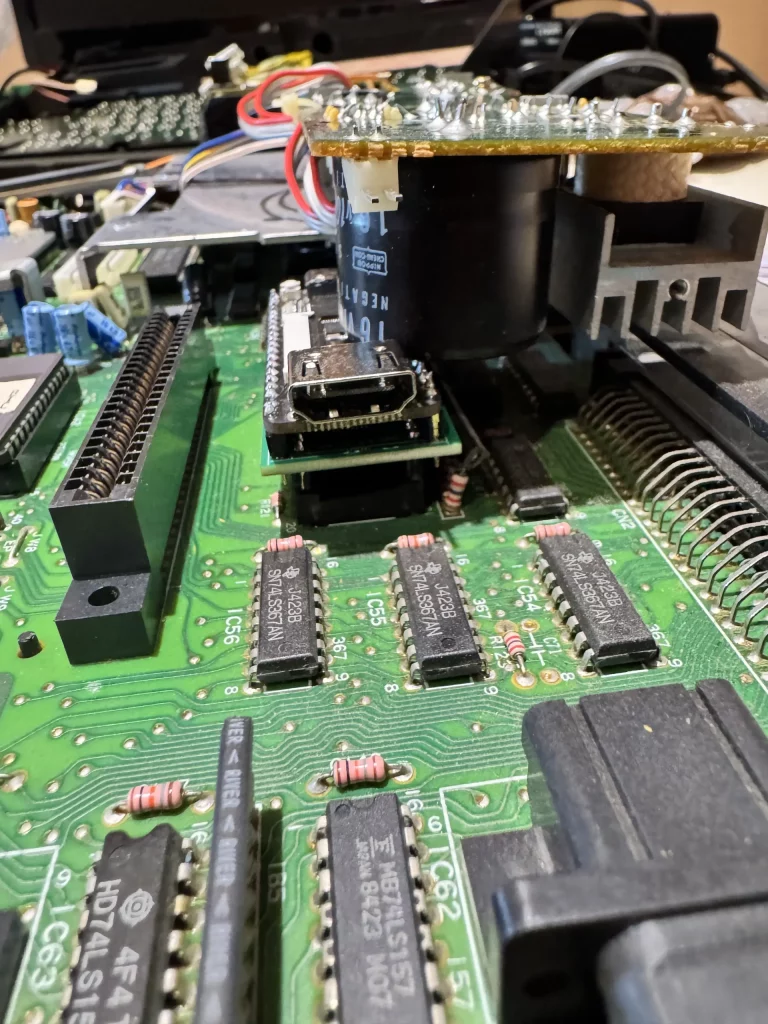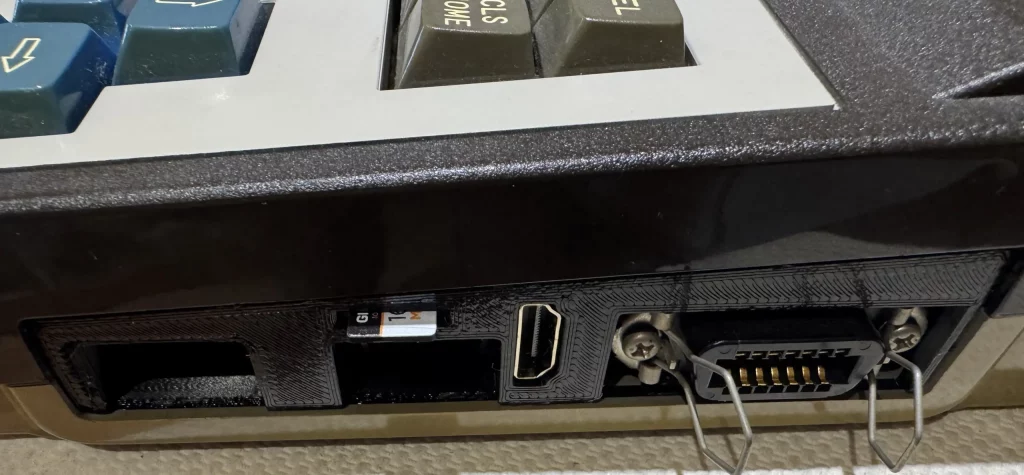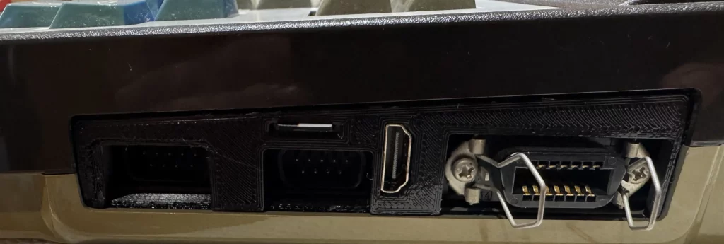 Con la ampliación de MSX2+ se ha colocado una placa impresa en 3D para el conector HDMI y la tarjeta MicroSD.